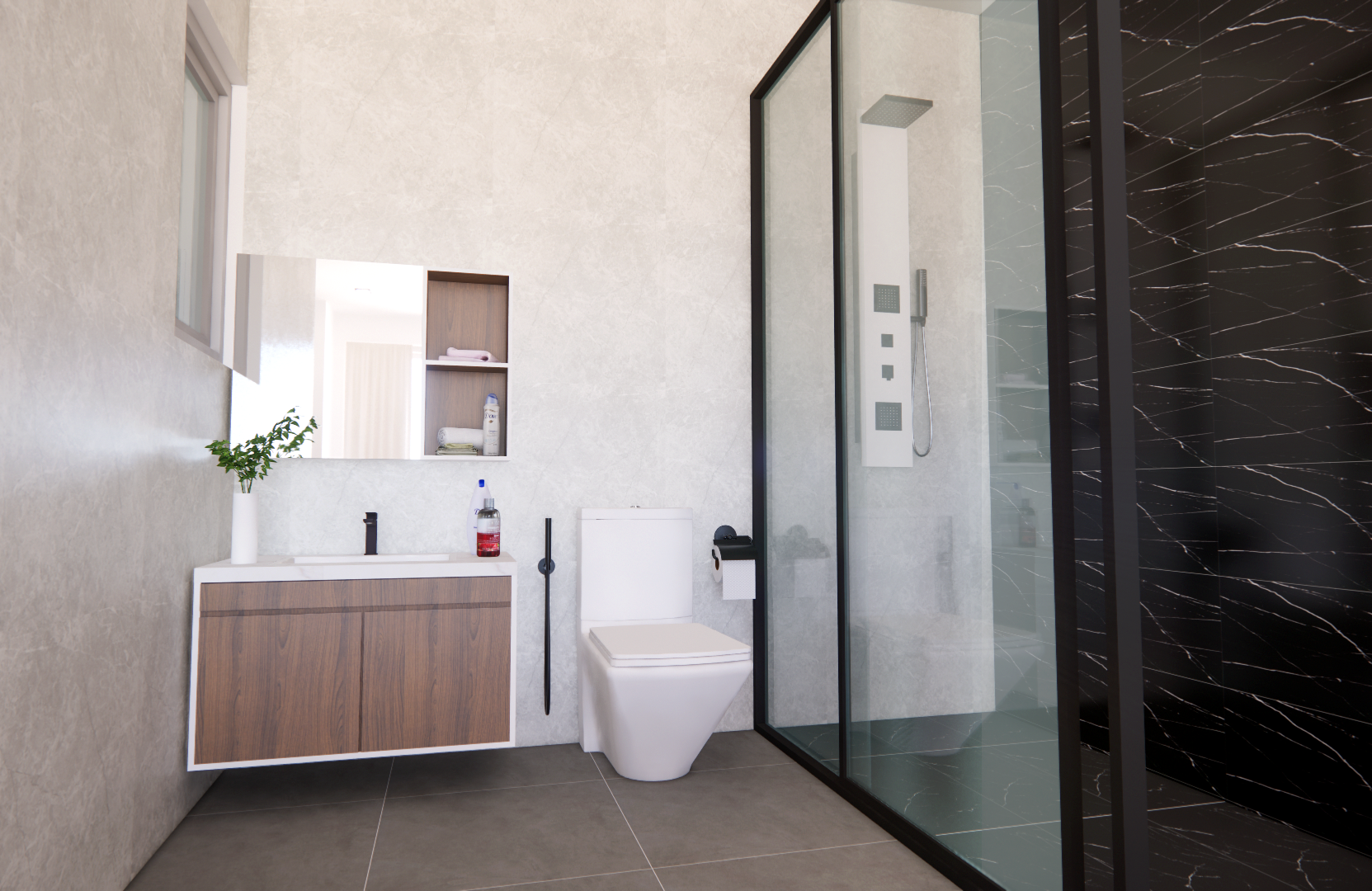 - All accessories such as Shaver Socket, Soap Holder, Towel Rails, and Toilet Paper Holder are included.