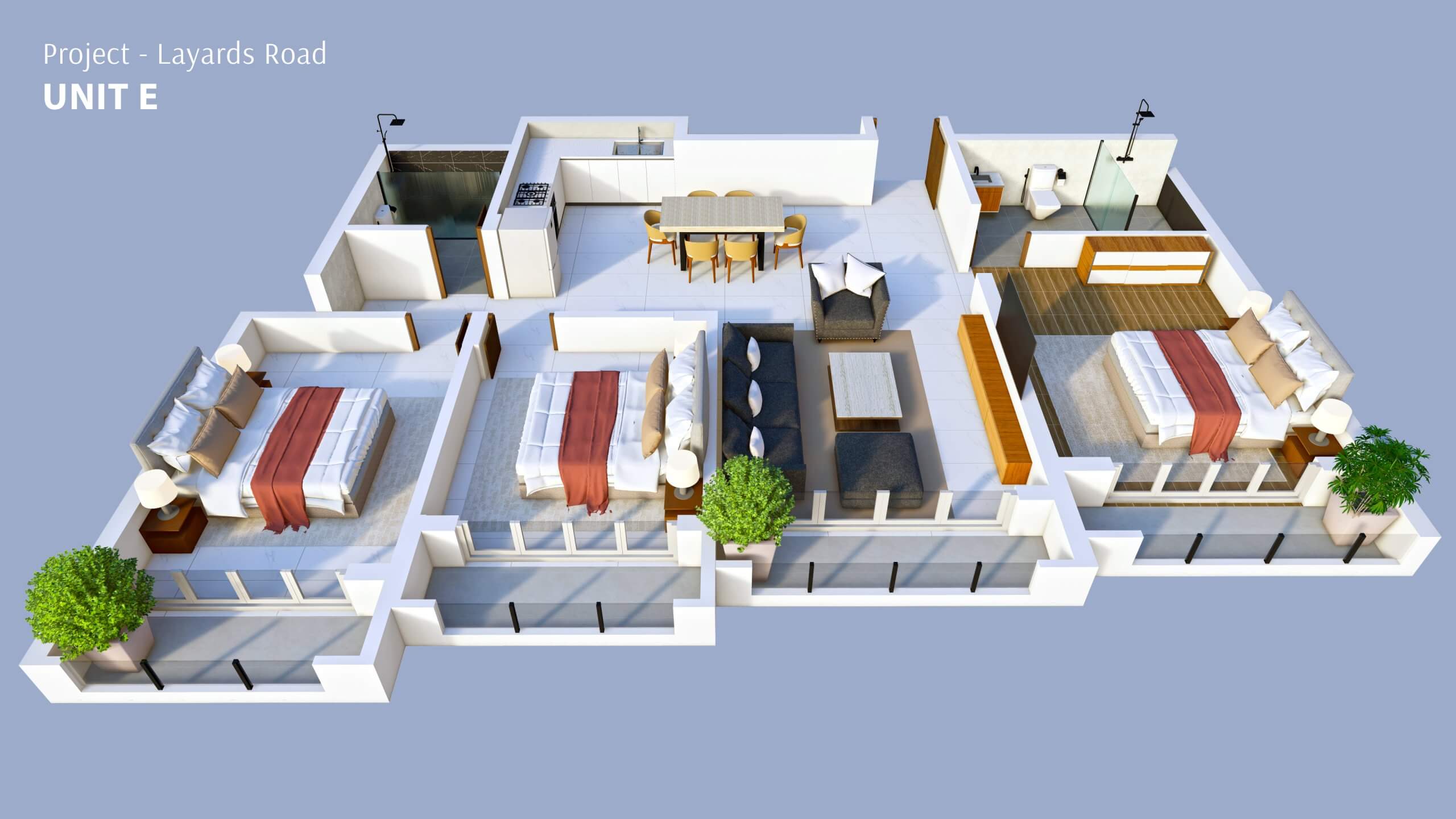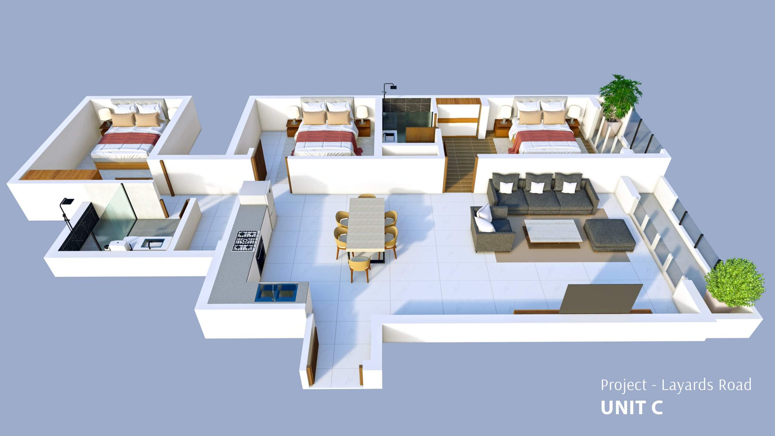 - Windows: Rust proof & powder coated aluminium windows with clear glass.